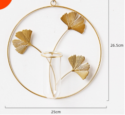 Gold Wall Vase Hanging Geometric Metal Vase Hydroponic Planter Wall Mounted Glass Tube Bud Vase