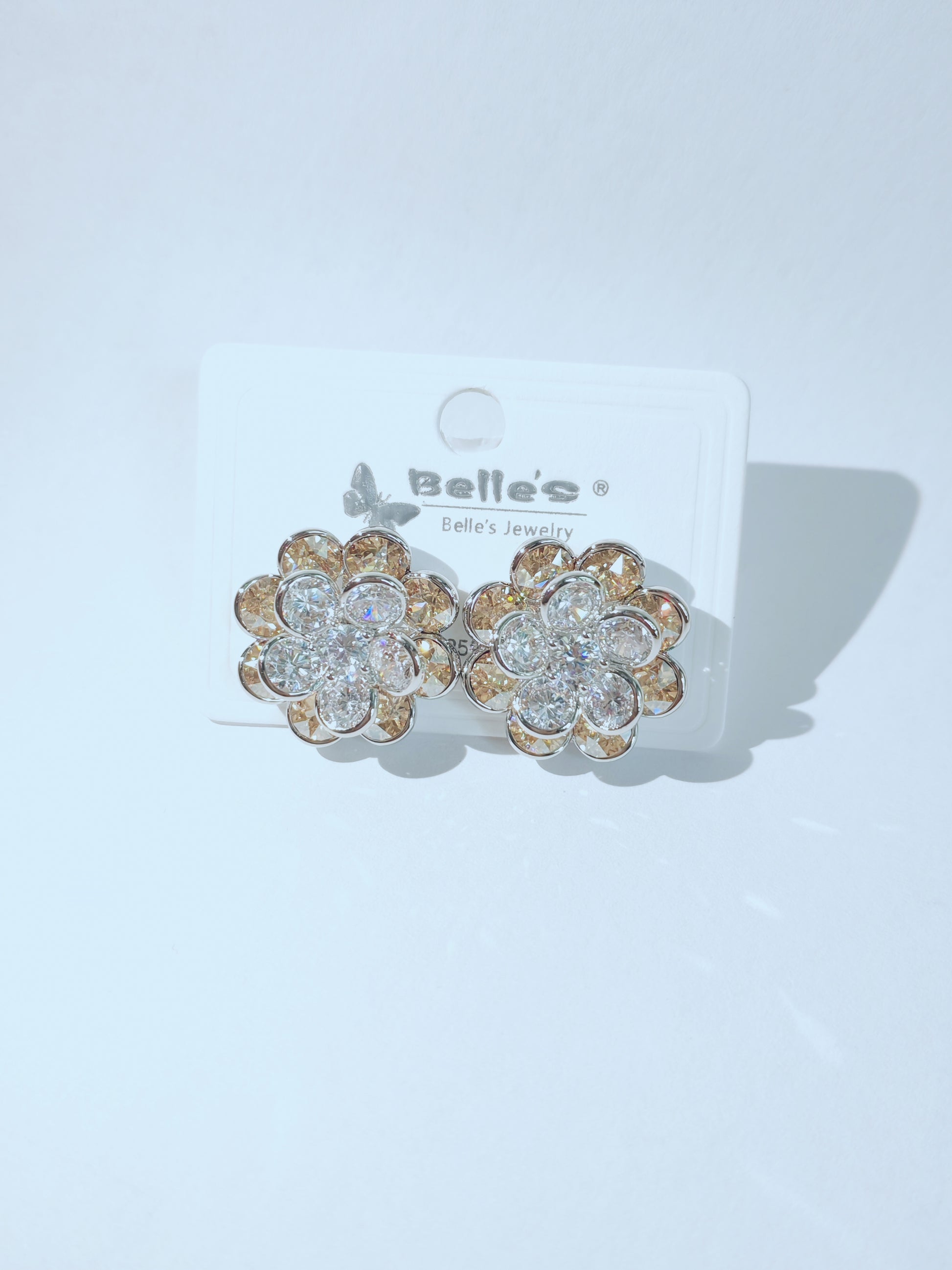 Silver 925 Elegant Crystal Flower Stud Earrings – Gold & Silver Sparkle